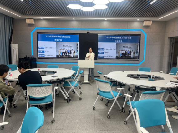 随后,许可彩围绕2025年度中新职教见习交流项目进行汇报。她聚焦新加坡护理教育的特色优势,从新加坡护理教育体系的整体架构入手,详细介绍了当地在智慧课堂理论教学中的创新实践,重点分享了AI教学、VR教学、仿真模拟教学等数字化教学手段在护理教学中的应用场景与实施效果——这些技术与护理教学的深度融合,实现了“人机协同”的教学闭环,有效提升了教学的趣味性与实效性,与当前护理教育数字化转型的趋势高度契合。此外,许可彩还分享了新加坡护理教育中先进的实践教学方法、丰富多彩的第二课堂活动及完善的学生职业发展教育体系,展现了新加坡护理教育“重实践、重素养、重发展”的鲜明特色,为我院优化护理实践教学、丰富育人载体、强化学生职业规划指导提供了可借鉴的实践经验。