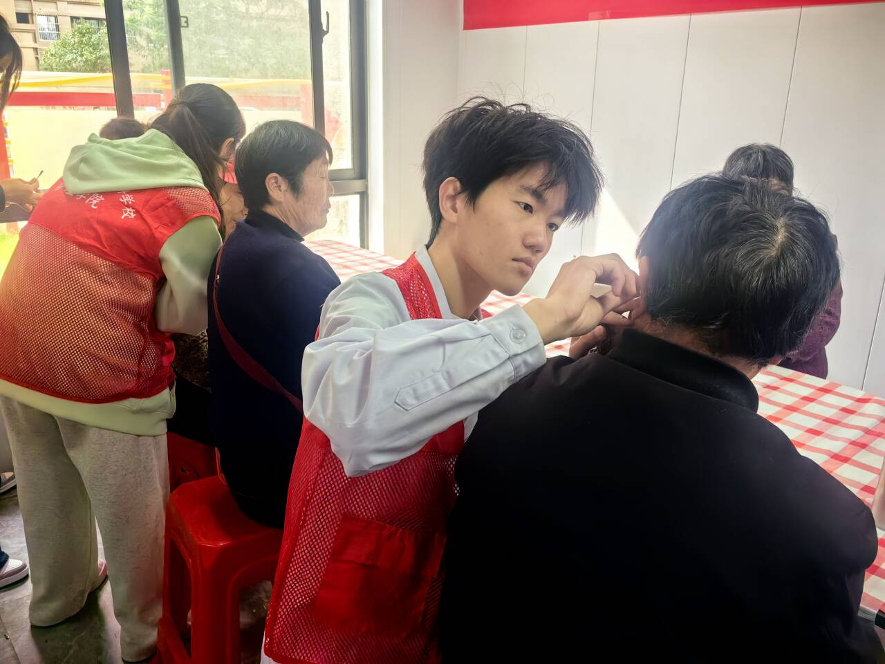 活动中,护理学院杨立英老师凭借扎实的中医护理理论功底与丰富临床经验,为前来咨询的老年人提供一对一专业健康指导。在耳穴压豆实操环节,杨老师精准定位相关穴位,并向老年人及陪同人员详细讲解穴位按压技巧、频次及注意事项,助力老年人通过便捷方式缓解身体不适。参与服务的老年人反馈,该中医护理方法实用性强,为日常健康管理提供了有效支撑。