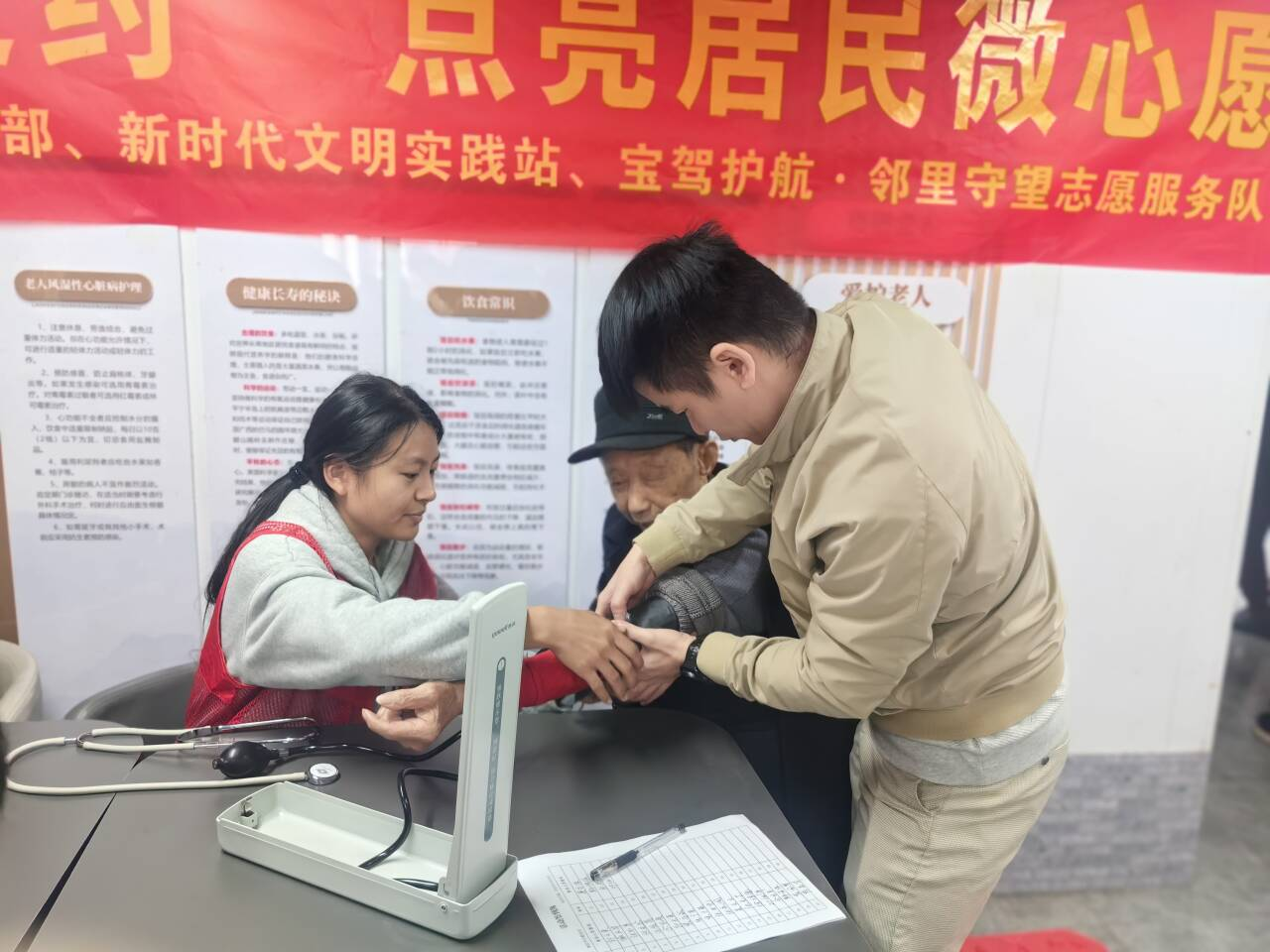 活动伊始,志愿者协助老年人就座并进行情绪安抚,严格按照护理操作规范为每位老年人测量血压,精准记录收缩压、舒张压等核心数据。针对测量结果,志愿者向老年人系统讲解血压动态监测的重要性、饮食调控要点及适宜运动方式,对血压指标偏高的老年人,重点强调遵医嘱服药及定期复查的相关要求,专业且细致的服务获得老年人广泛认可。
