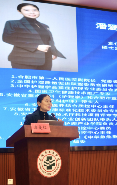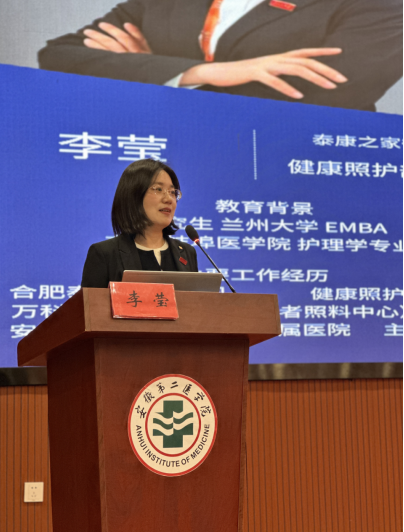 在专家报告环节,潘爱红副院长以《基于老龄化背景下的患病老人医养结合模式实践》为题,结合合肥市第一人民医院的临床实践经验,从医养结合模式的政策导向、核心内涵、实践难点及创新举措等方面展开分享。她通过具体案例,深入剖析了患病老人在养老照护中的核心需求,提出了“医疗+养老+康复”一体化的照护解决方案,为提升老年患病群体的照护质量提供了实践借鉴。