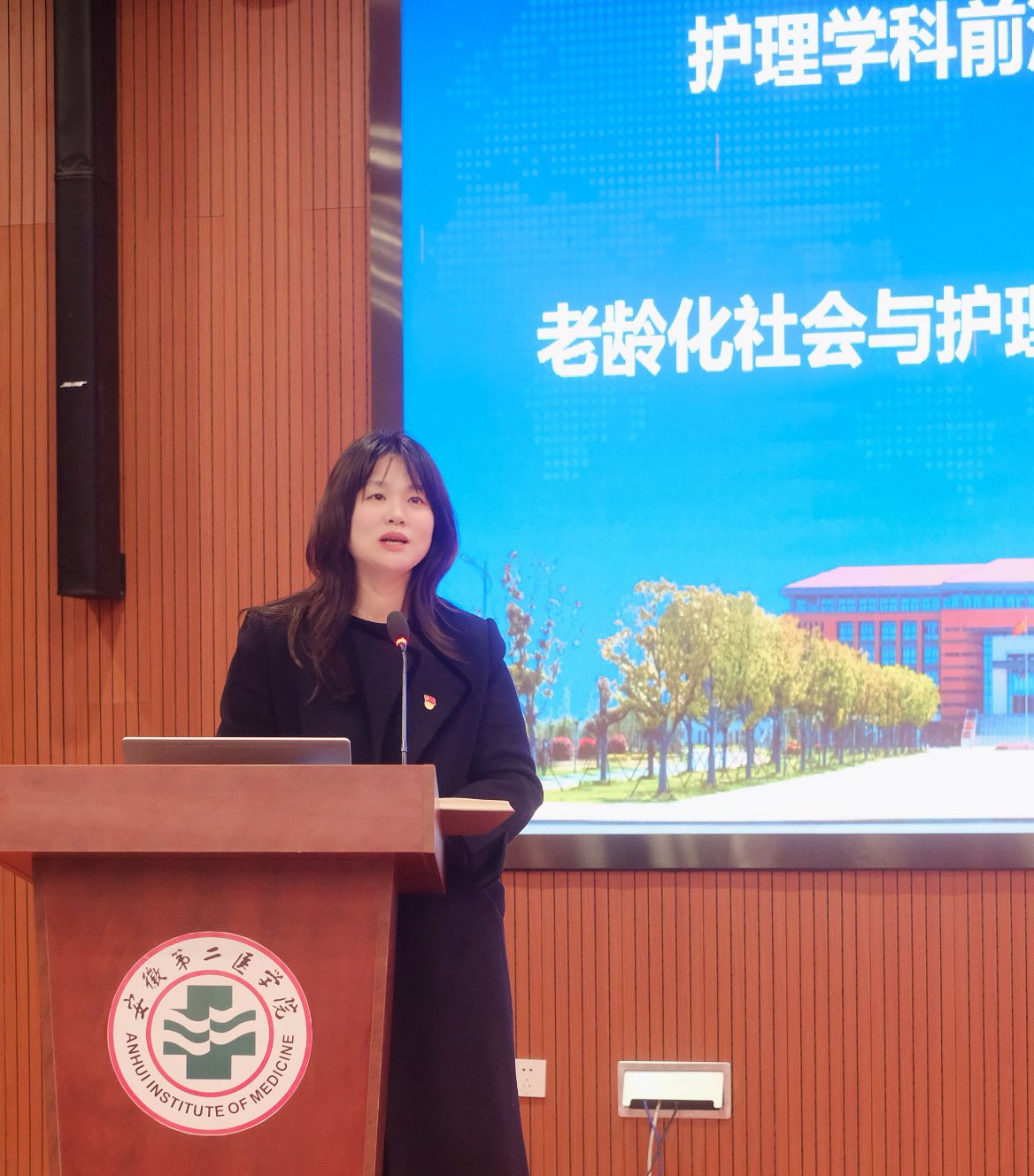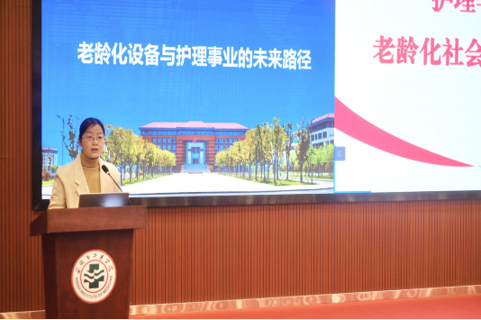 随后,朱延玲副院长发表欢迎辞,代表护理学院对两位专家的莅临指导表示热烈欢迎,向长期关心支持学院发展的各界同仁致以诚挚感谢,并简要介绍了学院在护理教学、科研及人才培养方面的成果与规划,希望全体师生以本次论坛为契机,深化对老龄化护理的认知,拓宽学术视野。