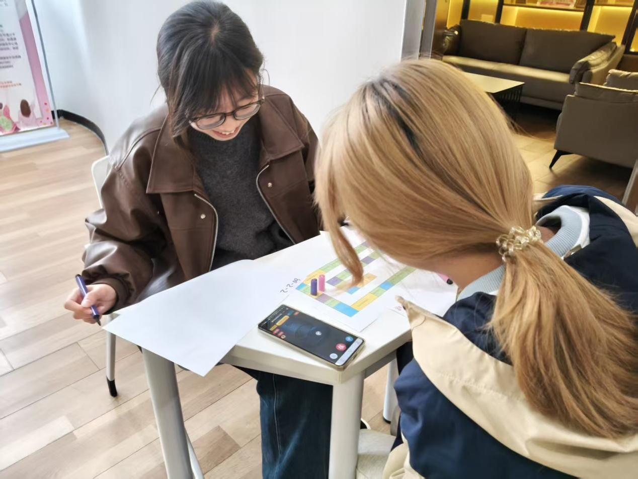 紧接着进行的“幸福大富翁”游戏将活动推向高潮。同学们两两一组,通过掷骰子前进格子,回答与幸福相关的问题,积累“幸福值”。大家在游戏中反思哪些事情能增加幸福感,哪些会消耗情绪,并在分享环节中畅谈感受,进一步加深了对自我情绪管理的认识。