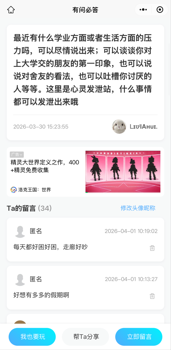 为进一步加强大学生心理健康教育工作,切实将心理关怀融入学生日常学习生活,助力2025级新生更好适应第二学期校园生活,有效化解人际矛盾、疏解成长压力,3月底,韩齐慧老师组织25级口护1-4班、25级助产1班开展了以“暖心相伴,向阳成长”为主题的一站式学生社区心理健康活动。活动 氛围轻松、参与感强, 精准聚焦新生适应与压力调节、宿舍关系与人际交往两大核心需求,为同学们搭建心灵交流的温暖平台。
