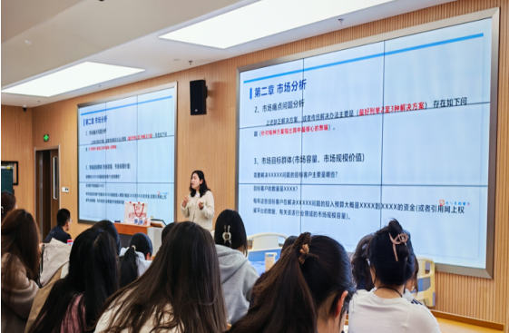 针对护理专业学生在备赛过程中普遍面临的痛点问题,张晶晶老师巧妙地引入了“智能胎心健康监测手环”等优秀护理创新项目案例,对商业计划书的撰写框架进行了细致拆解。从执行概要、市场分析、产品技术、商业模式到团队建设、风险应对,她逐一讲解核心要点,强调创新要立足临床实际真问题,扎根护理实践,突出项目的实用性和社会价值。同时,结合大学不同阶段的学生成长特点,为同学们量身定制了“大一打基础、大二冲省赛、大三攻国赛”的阶梯式备赛路径,指导大家从文献检索、PPT 制作、团队协作等基础能力入手,一步一个脚印,逐步实现创新成果的有效落地。